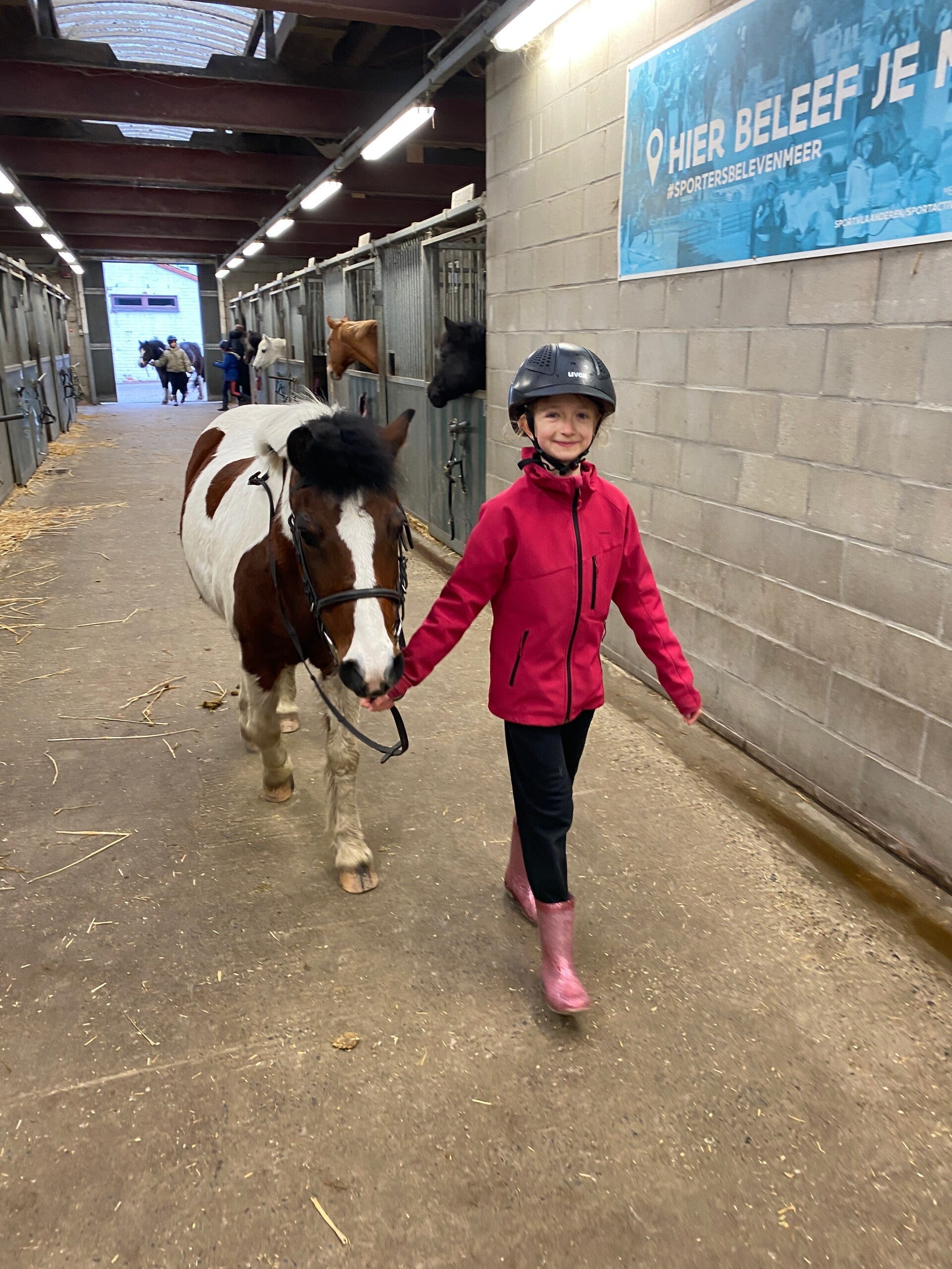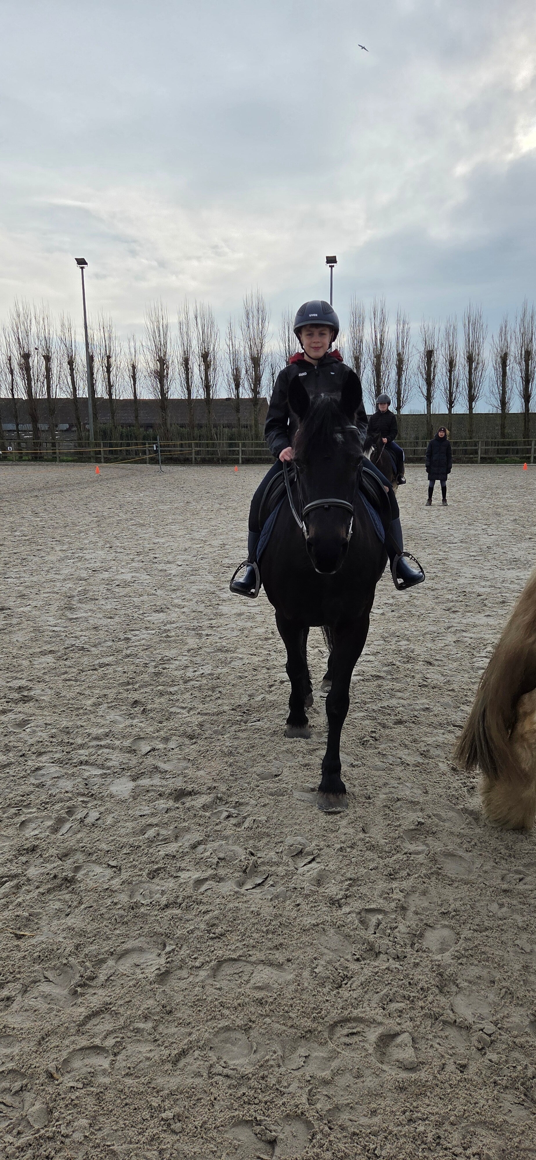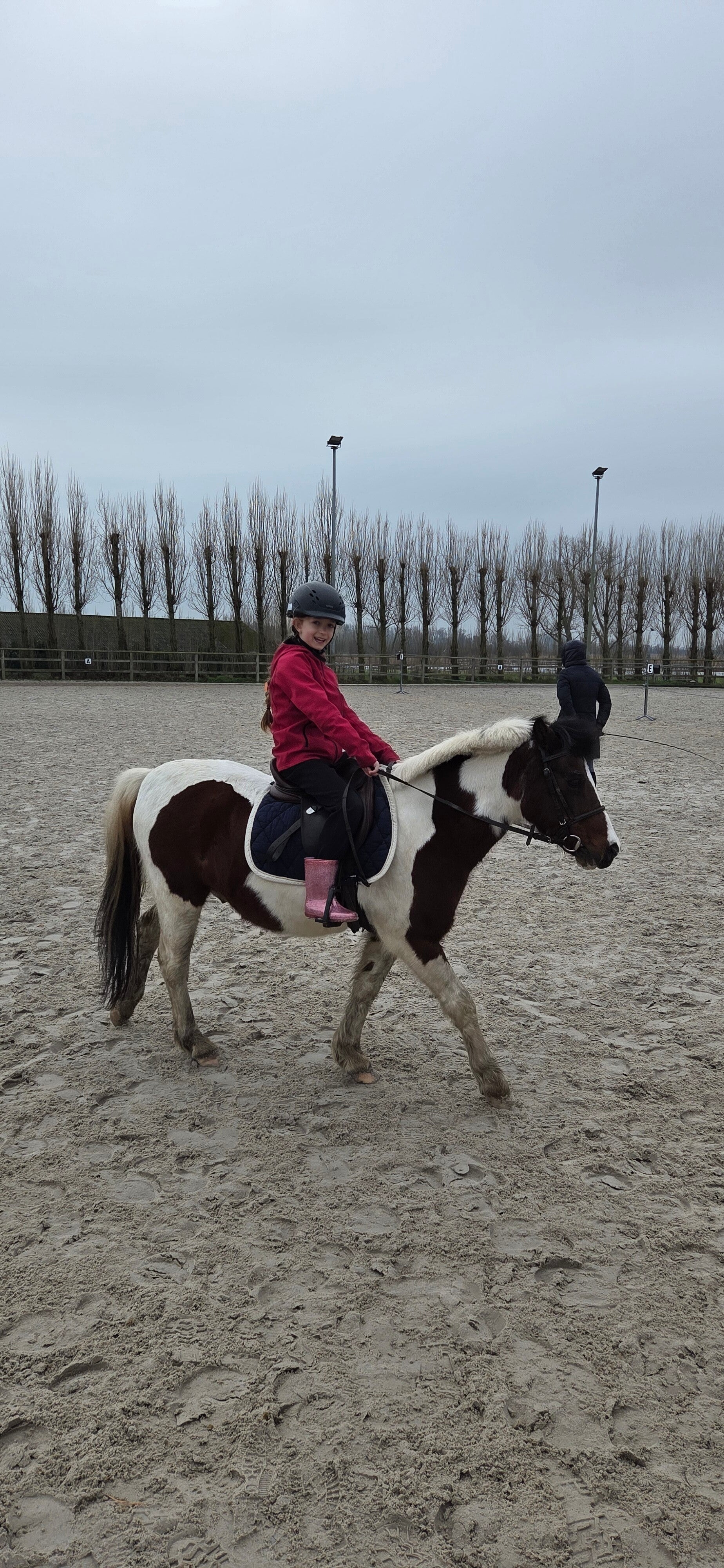 Tijdens het rijden leerden we nieuwe figuren én hoe we onze pony een versnelling hoger konden zetten. We ontdekten dat sommige pony’s duidelijk meer horsepower hebben dan andere — echte racemachines — maar uiteindelijk gingen ze allemaal netjes in draf. (Oké, sommige met iets meer overtuiging dan andere.)