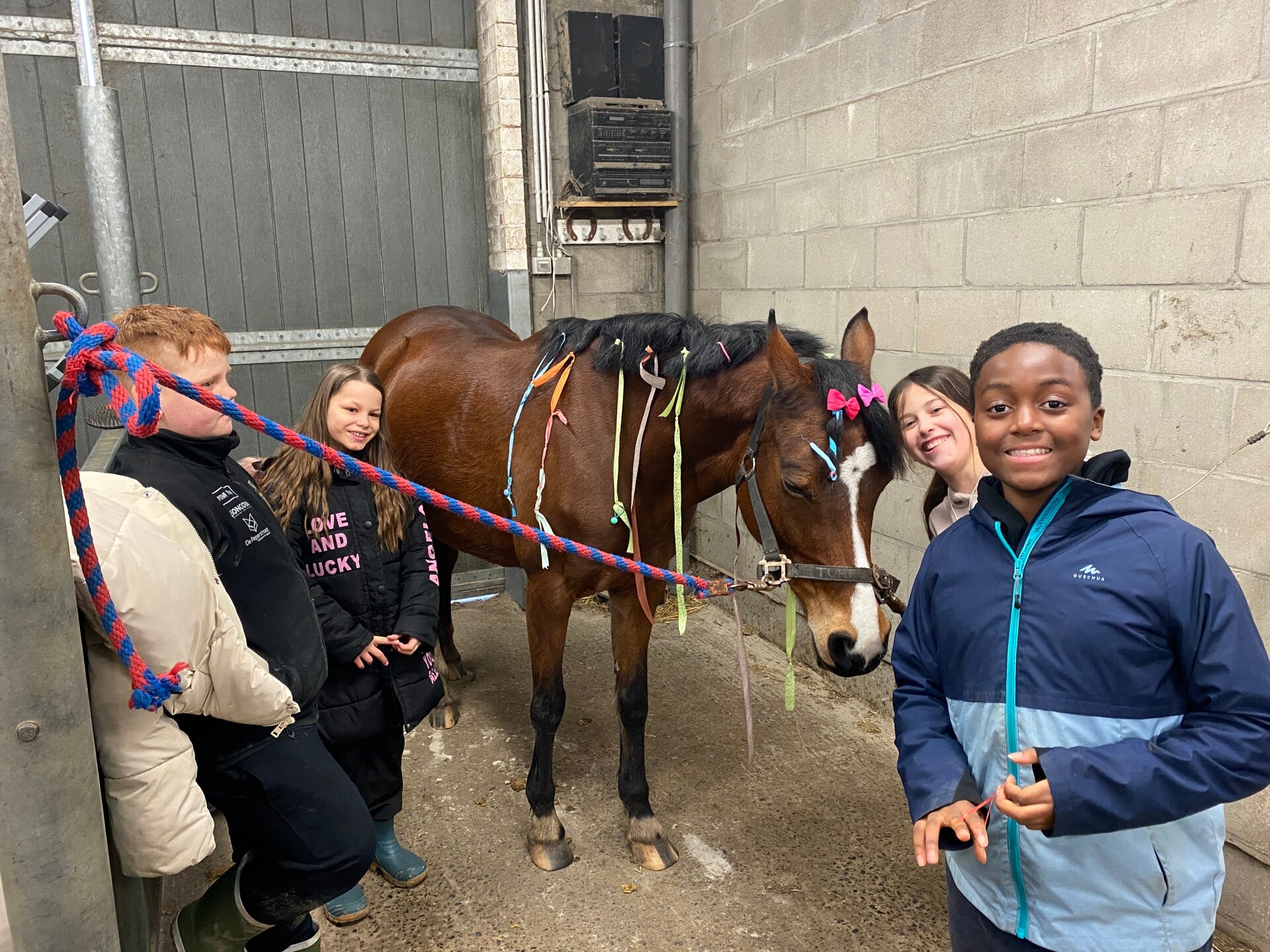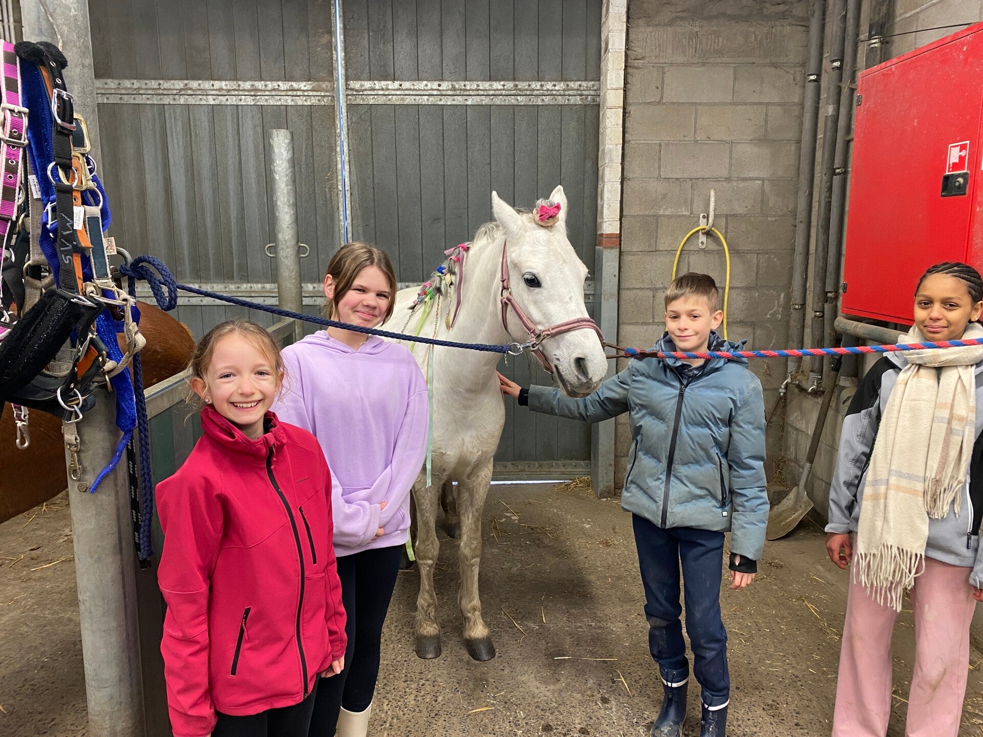 Naast het rijden hadden we ook “Pimp My Pony”. Jongens of meisjes, het maakte helemaal niets uit: iedereen ging all‑in met vlechtjes, staartversiering en kapsels waar zelfs een kapper jaloers op zou zijn. Onze pony’s zagen eruit alsof ze op auditie gingen voor een glamoureuze modeshow.
