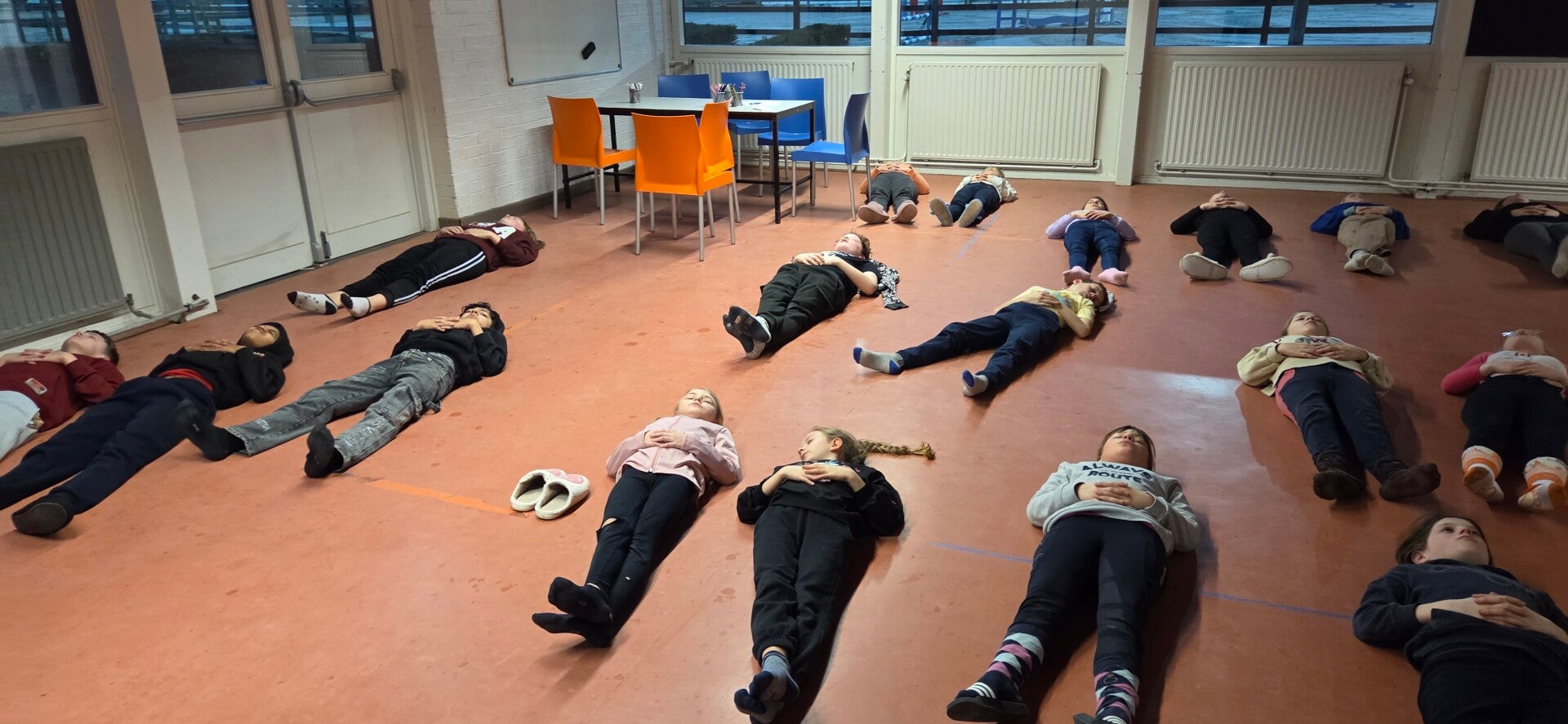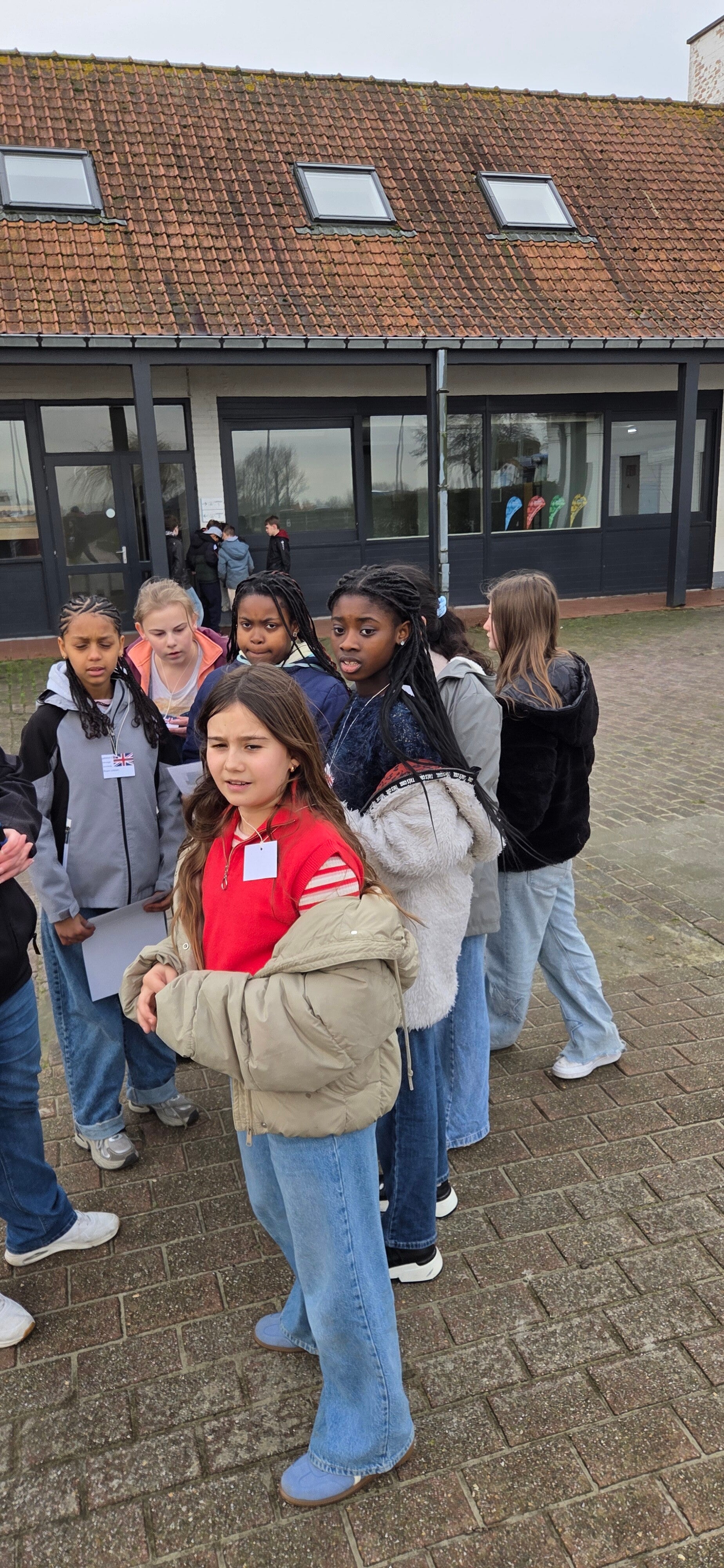 Daarna verzamelden we in de grote zaal waar juffen en meester het thema van onze GWP onthulden: Wereldoorlog I. Om dit helemaal te beleven, vormden we pelotons van zes leerlingen. Elk peloton kreeg een land toegewezen en net zoals in een echt leger moeten we voor elkaar zorgen. Goed nieuws: er zijn nog geen slachtoffers gevallen!