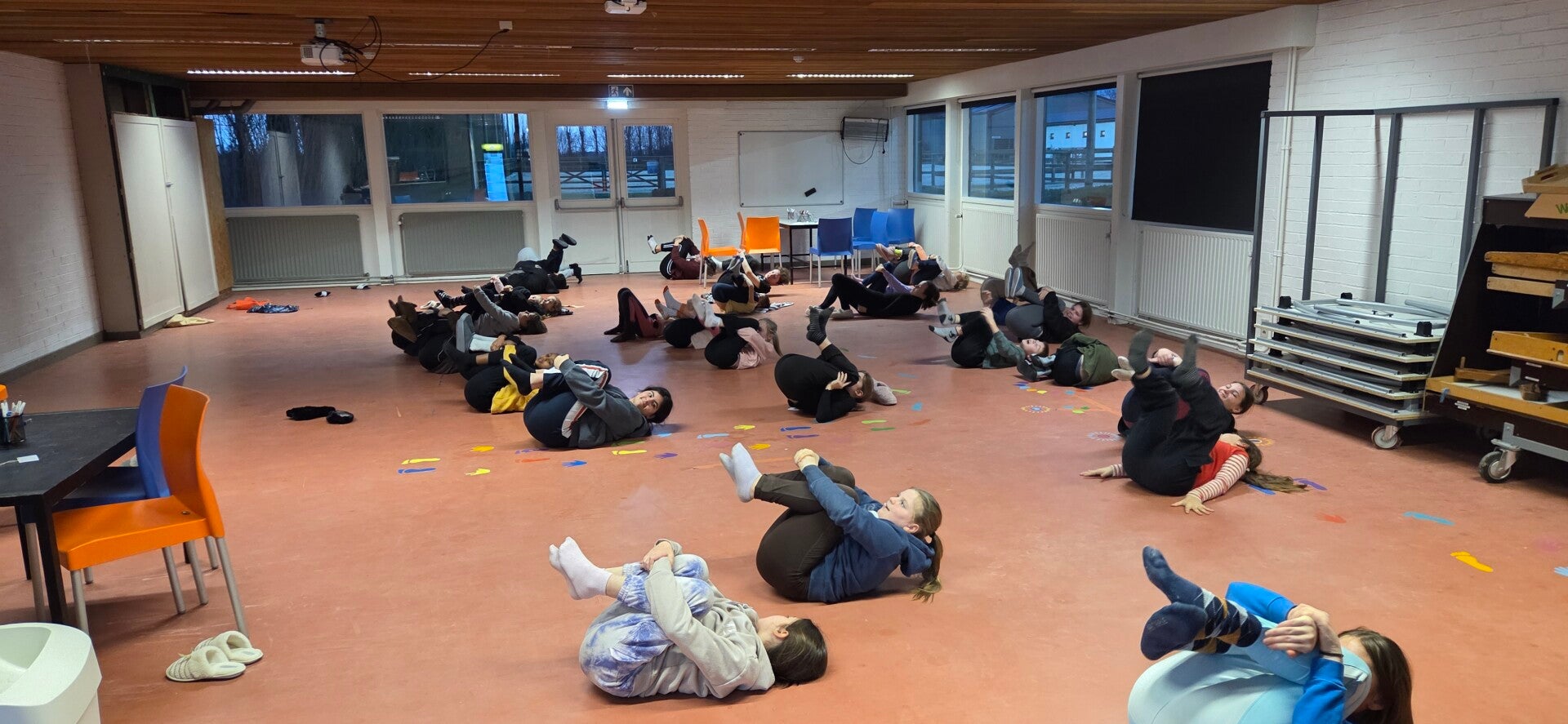 Vandaag was het eindelijk zover: met de bus vertrokken we richting Sport Vlaanderen Woumen! De sfeer zat er meteen goed in, en nog voor we het goed en wel beseften, stonden we al voor onze kamers.