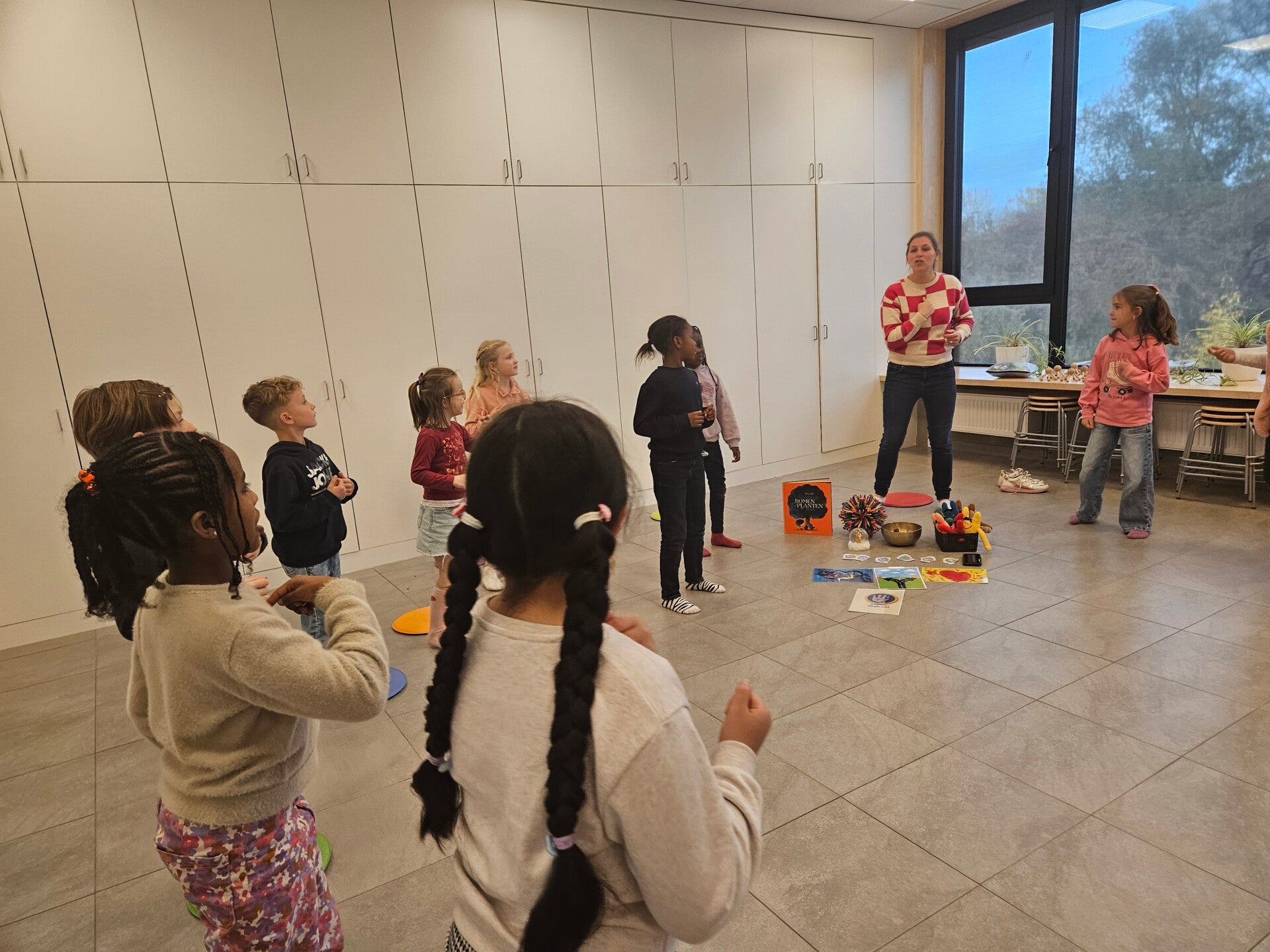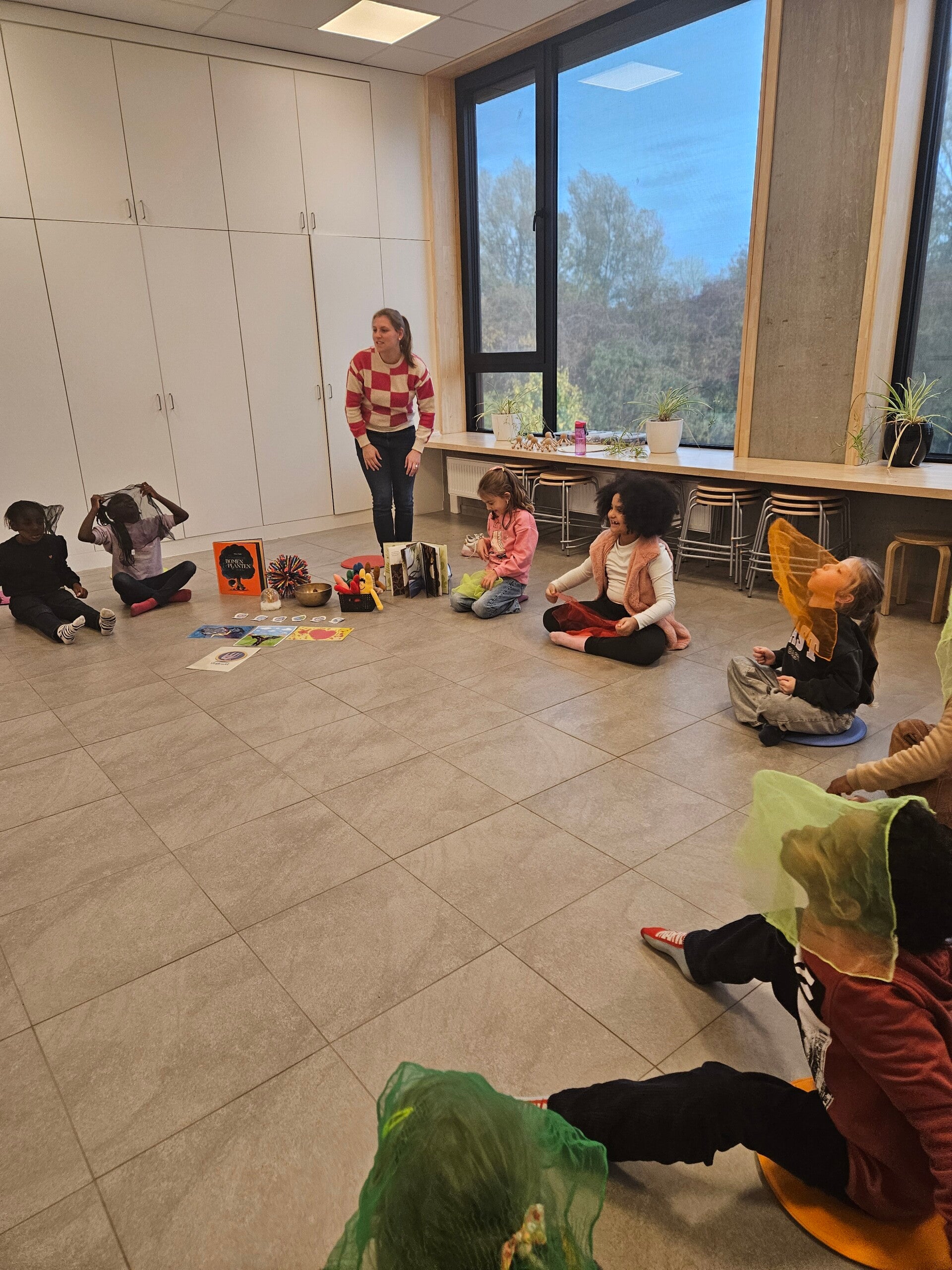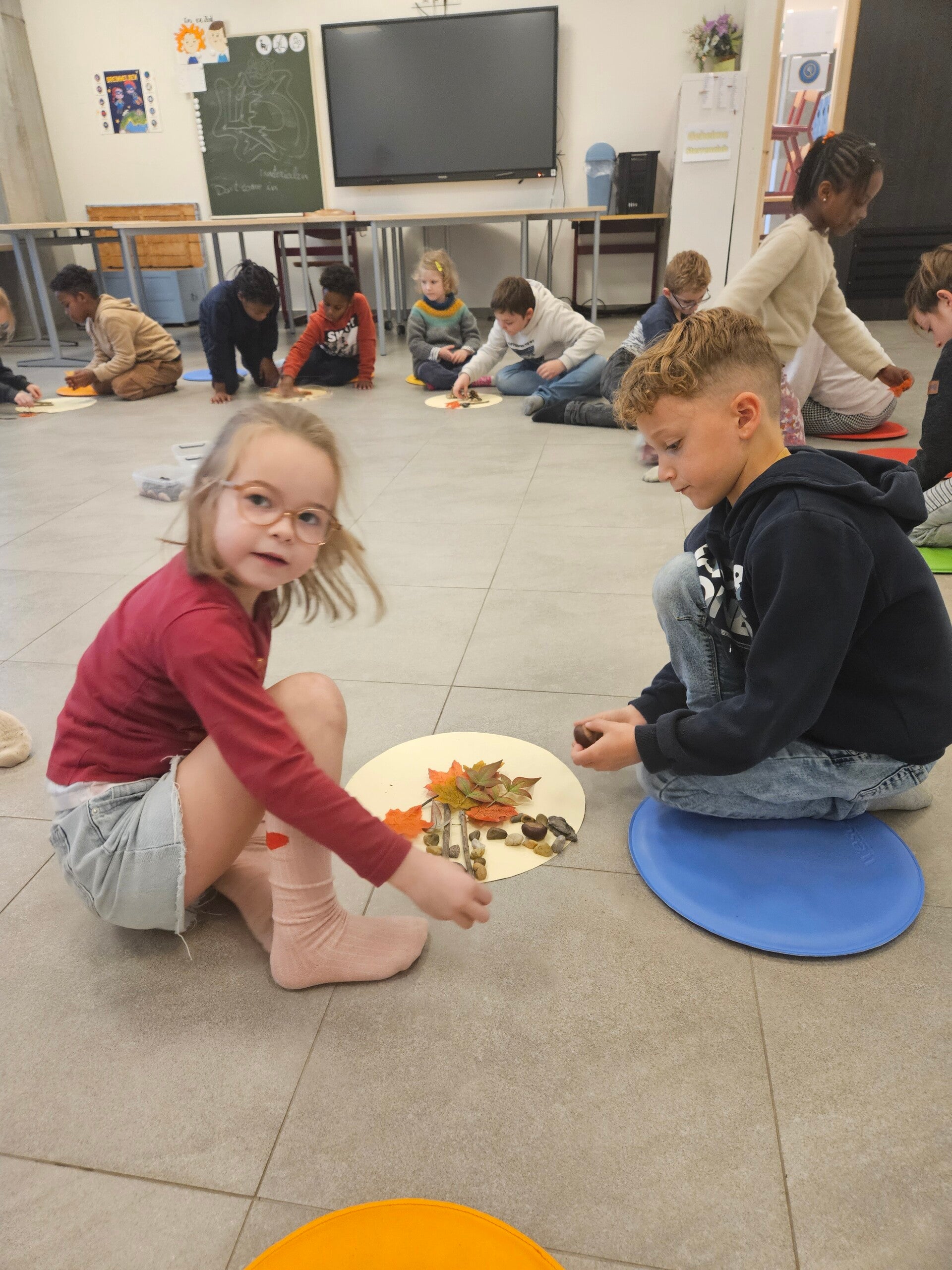 Nesten met juf Jolien en met elkaar.